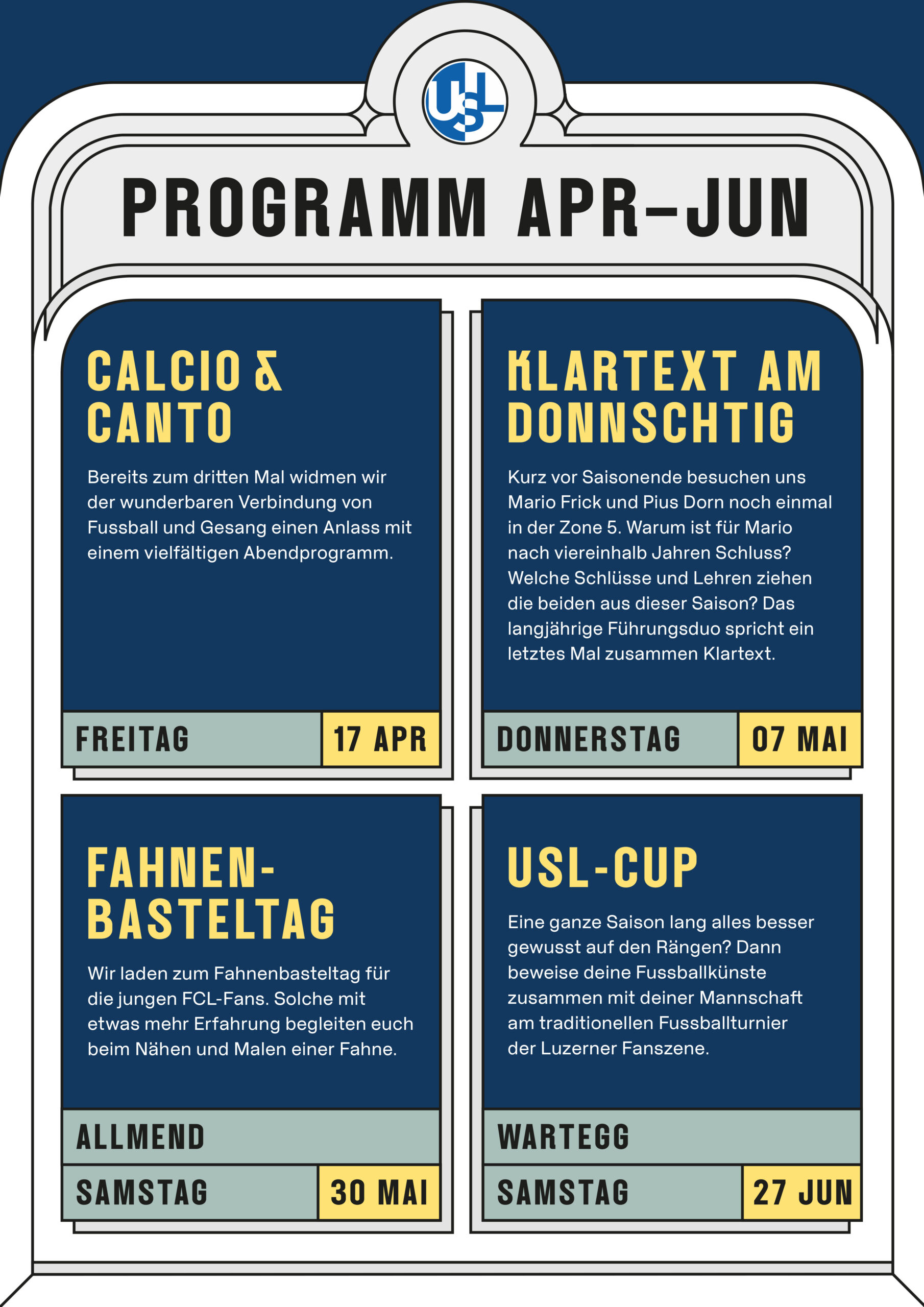Anmeldungen als 2er-Team (Beitrag 20.–) sind vor dem Heimspiel gegen Lausanne in der Zone 5 oder per Mail an info@usl.lu möglich.